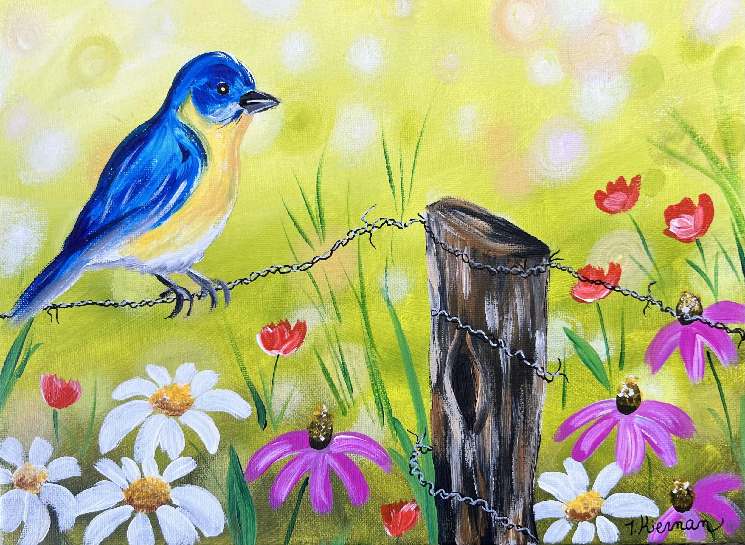 Back to All Events Bluebird Wildflowers Saturday, August 30, 2025 2:00 PM 4:30 PM Google Calendar ICS Let’s wrap up summer with a glorious painting featuring wildflowers and a bluebird. All materials provided and we clean up the mess! Join us for BIRD WEEK here at the Studio!Get Tickets HERE!